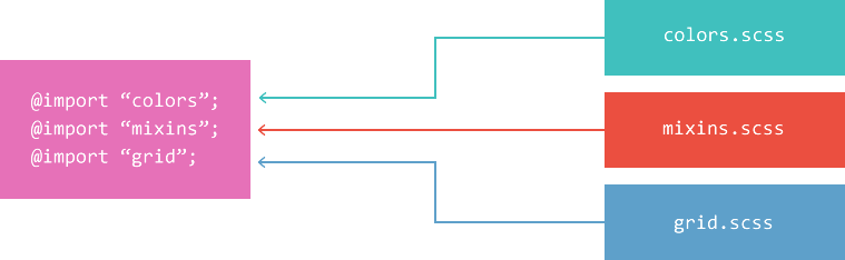 sass也有一个@import规则,但不同的是,sass的@import规则在生成css文件时就把相关文件导入进来。这意味着所有相关的样式被归纳到了同一个css文件中,而无需发起额外的下载请求。另外,所有在被导入文件中定义的变量和混合器(参见 2.5 节)均可在导入文件中使用。